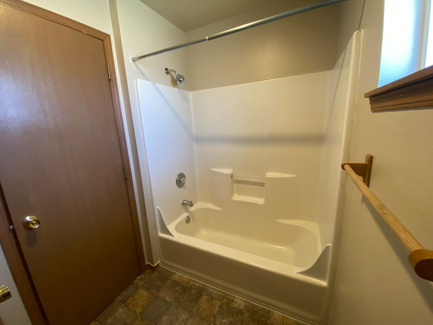 The bathroom has a double-sink vanity with plenty of storage. Separate shower/toilet room facilitates very roommate friendly use.