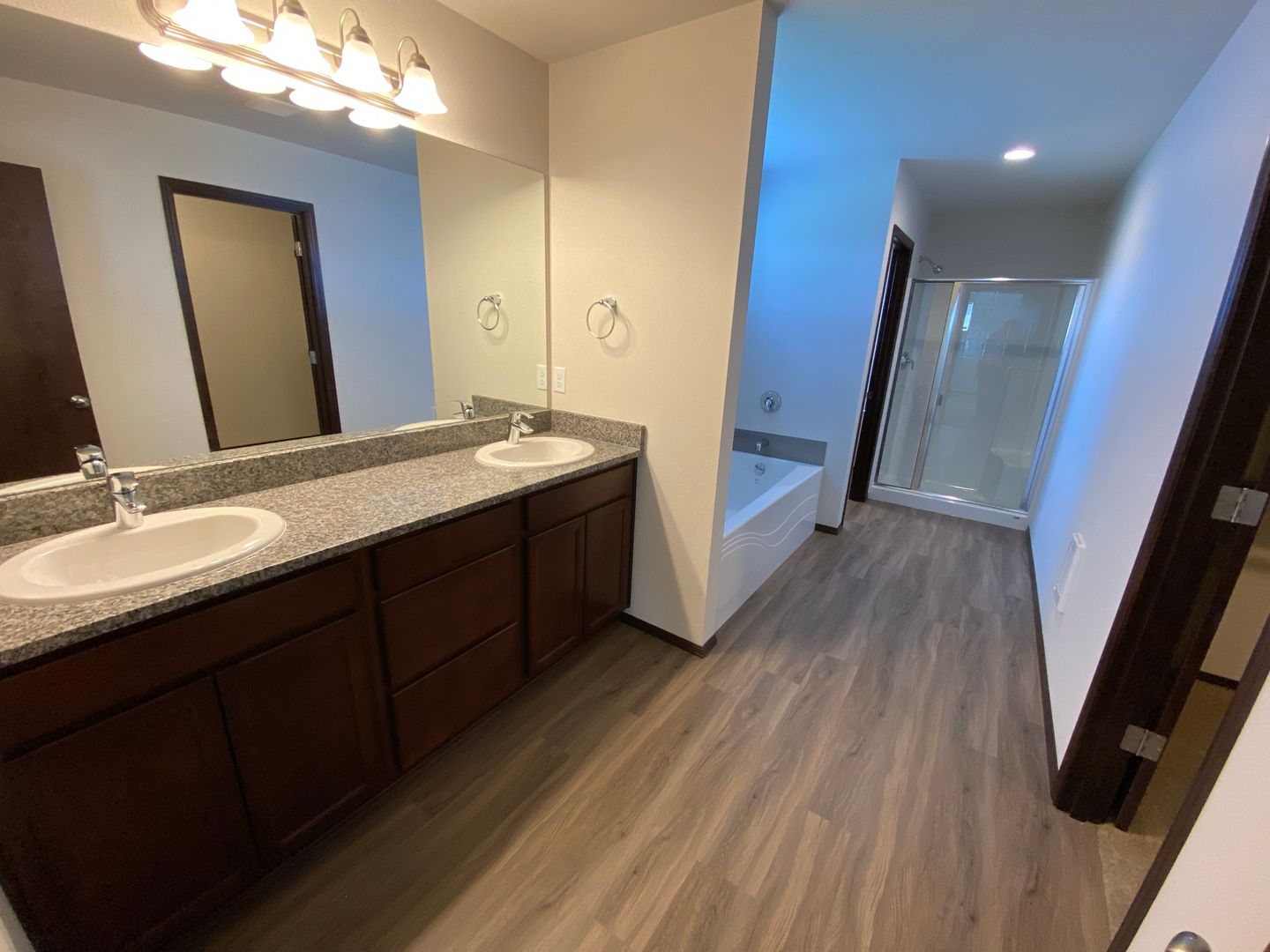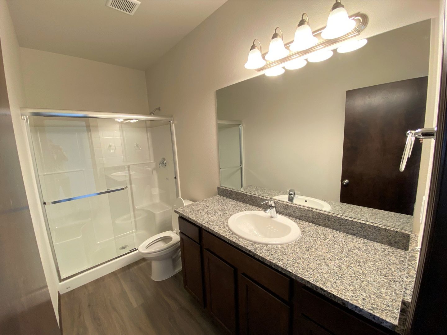 Expansive master bedroom suite includes master bathroom with double sink vanity, bathtub, shower, and private toilet room, along with a large walk-in closet. The 5th bedroom is oversized and could easily be used as a second living room/game room! A separate laundry room is located upstairs for convenience, and will have a new washer and dryer provided. Unwind in your back yard without the stress - lawn mowing is included, along with an automatic sprinkler system to keep your lawn green.