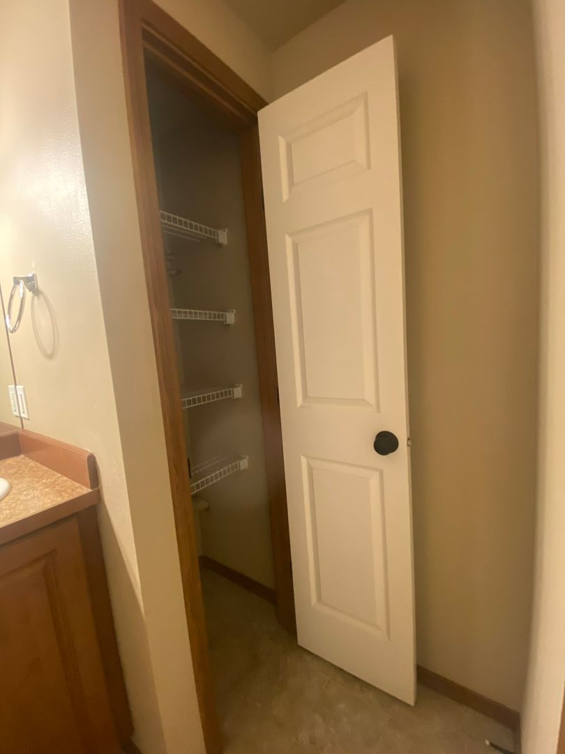 Past the office and storage area is the master suite with walk-in closet and full bathroom. Walk-in closet includes full-sized provided stacking washer/dryer!